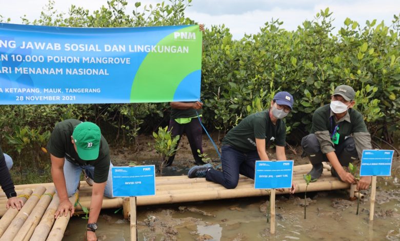 Tangerang, impresinews.com,–Menyambut Bulan Menanam Pohon Nasional pada Desember 2021, serta dalam rangka menyukseskan Gerakan Kolaborasi BUMN Hijaukan Indonesia, PT Permodalan Nasional Madani atau PNM tanam 10.000 mangrove di Desa Ketapang, Kecamatan Mauk, Kabupaten Tangerang pada Minggu (28/11/21).