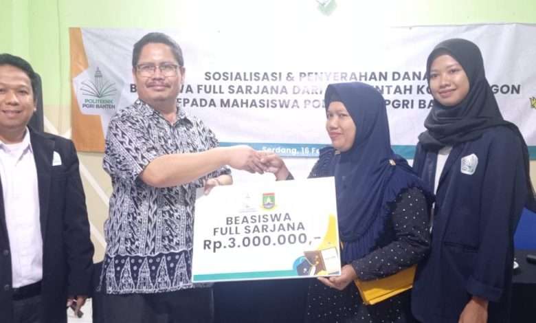 CILEGON,- Politeknik PGRI (POLGRI) Banten serahkan beasiswa ‘Full Sarjana’ dari Pemerintah Kota (Pemkot) Cilegon tahun ajaran 2022-2023, di Aula kampus POLGRI Kabupaten Serang, 16 Februari 2023.