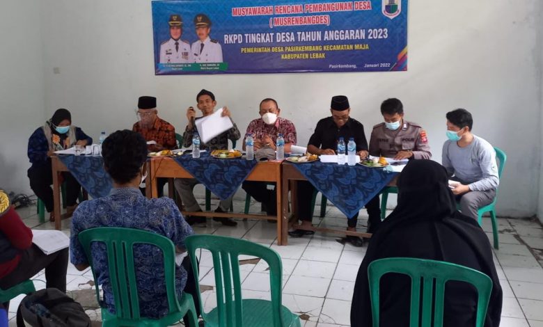 Lebak, impresinews.com,- Babhinkamtibmas Desa Pasirkembang Bripka Irpan Maulana menghadiri musyawarah rencana pembangunan desa (Musrenbangdes) tahun anggaran 2023 Desa Pasirkembang kecamatan Maja kabupaten Lebak, Jum’at ( 21/01)
