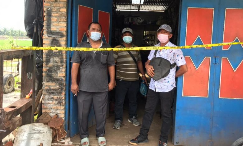 Korban bernama Muhammad Azmi (38) di temukan telah meniggal dunia dengan kondisi leher terikat seutas tali bewarna putih yang disimpulkan pada kayu galang seng disebuah gudang (bengkel) Las tempat usaha korban.