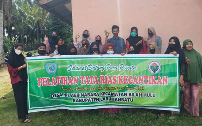 “Terima kasih desa N-8 yang memberi kepercayaan kepada Rumah Kreatif Labuhanbatu untuk pelaksanaan pelatihan tata rias,” ucap Ketua RKL, Rahman.