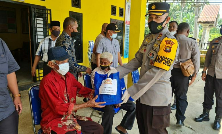 Sambut HUT Bhayangkara, Kapolres Tebo Beri Sembako Warga Tak Mampu