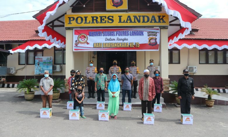 Landak_Kalbar,/impresinews.com,- Untuk menyambut HUT (Hari Ulang Tahun) Bhayangkara ke-75, Polres Landak melaksanakan kegiatan Bakti Sosial yang secara simbolis dilaksanakan di Halaman Polres Landak. Jum’at (25/06/2021).