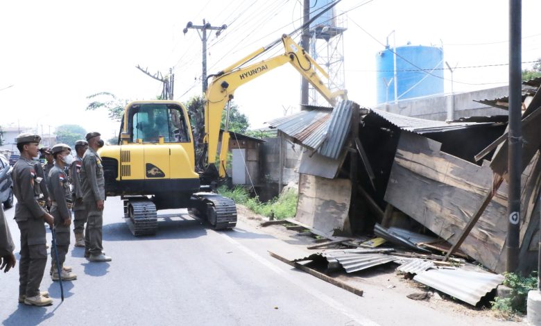 Satpol PP Kabupaten Serang Bongkar Puluhan Bangunan Liar