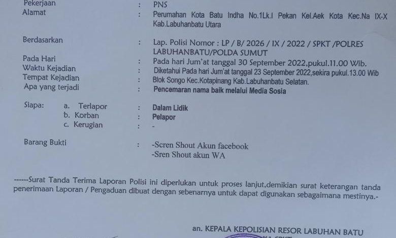 Sebagai langkah tindak lanjut, oknum pegawai Kominfo Labuhanbatu ini didampingi pengacaranya melaporkan akun Facebook Ali Ahmad ke Polres Labuhanbatu pada hari ini juga, Jumat 30 September 2022.