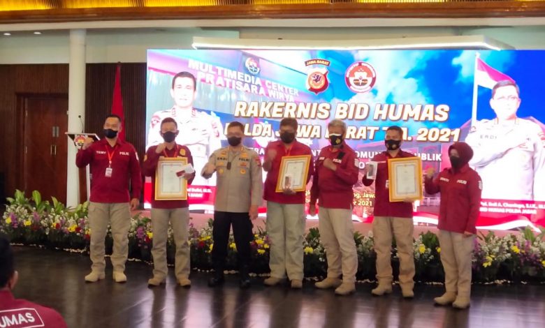 Indramayu, Impresinews.com – Sie Humas Polres Indramayu raih penghargaan dalam kegiatan Rakernis (Rapat Kerja dan Tekhnis) Humas Polda Jabar T.A. 2021 dengan Tema “Strategi Pemantapan Komunikasi Publik Yang Presisi di Era Post Truth, bertempat di bumi Sangkuriang, Bandung, Jawa Barat, Rabu (15/09/2021).