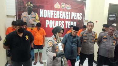 Konferensi Pers Polres Tebo, 5 Tersangka Pengeroyokan Turnamen Sepak Bola Tebo Ilir