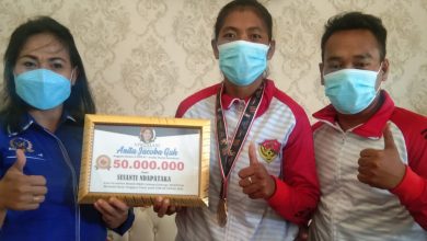 Peduli Atlet Berprestasi, Anitha Gah Serahkan 50 juta Kepada Susanti Peraih Medali Emas