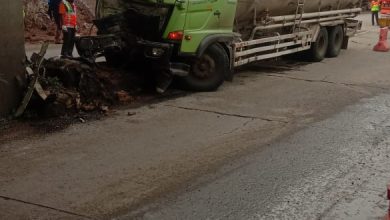 Diduga Hindari Kendaraan Bermotor, Truk Tangki Hamtam Pembatas Terowongan di Tambak