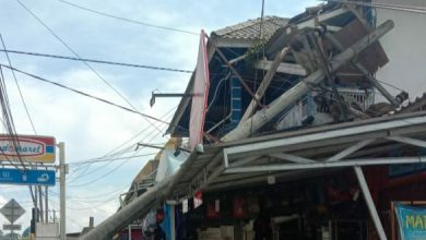 Tiang Listrik Roboh, Satu Ruko Tertimpa di Lambar