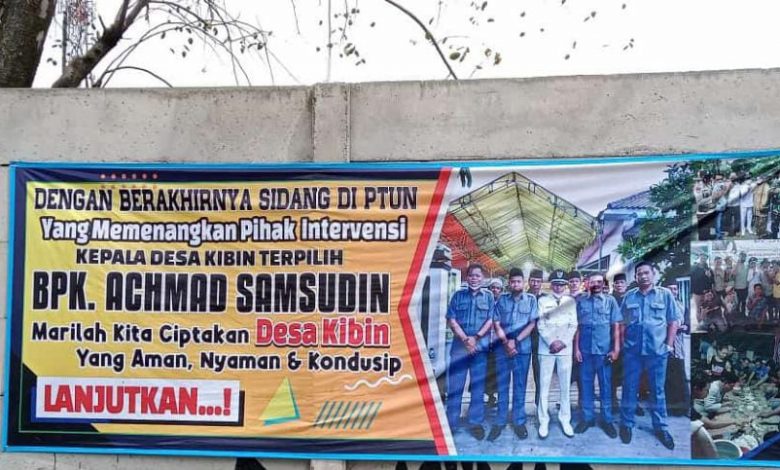 SERANG,impresinews.com-Beberapa hari yang lalu masyarakat desa kibin telah di buat heboh oleh spanduk yang bertuliskan Dengan Berakhir Nya Sidang Sengketa Pilkades Di PTUN Yang Memenangkan Pihak Intervensi, spanduk tersebut terpasang di jalan ciwajik desa kibin serang-banten, Kamis(26/05/22).