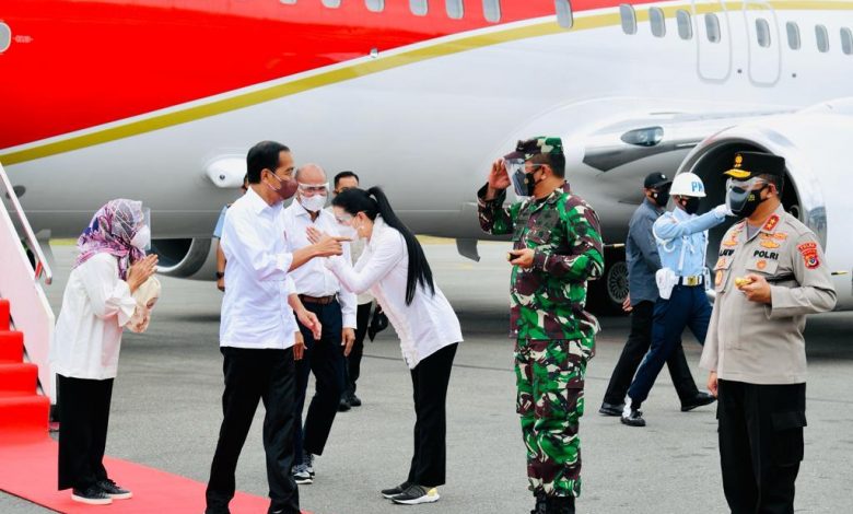 Tiba di Bandara Internasional Komodo Labuan Bajo sekitar pukul 10.40 WITA, Presiden Joko Widodo beserta Ibu Negara Iriana Jokowi menuju Terminal Multipurpose Wae Kelambu, Labuan Bajo Kecamatan Komodo, Kabupaten Manggarai Barat, NTT.