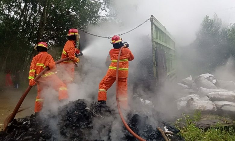 Ia menjelaskan, setelah mendapat laporan, petugas Damkar bergerak cepat turun menuju lokasi guna memadamkan api ditumpukan arang, sehingga api tidak sampai melalap habis seluruh badan Truck Fuso itu dan dapat segera dipadamkan.