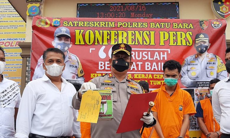 Dipimpin langsung oleh Kapolres Batu Bara AKBP. Ikhwan SH.,MH. diwakili oleh Kasat Reskrim Polres Batu Bara AKP Fery Kusnadi SH.MH, kepada awak media menyampaikan pemaparan pengungkapan 6 (enam) kasus kriminal diwilayah hukum Polres Batu Bara dan berhasil mengamankan 7 (tujuh) tersangka.
