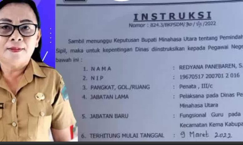 Kali ini, seorang aparatur sipil negara (ASN) bernama Redyana Panebaren mengeluhkan surat mutasi yang ia terima dari Badan Kepegawaian Pendidikan dan Pelatihan (BKPP) Minut tanggal 8 Maret 2022, yang isinya menugaskan Redyana sebagai tenaga fungsional guru pada SD Negeri Lilang Kecamatan Kema per 9 Maret 2022.
