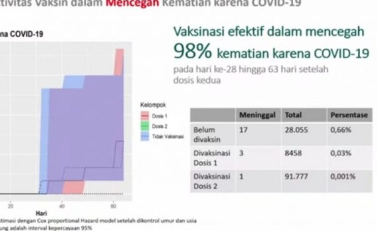 Berdasarkan analisis yang dilakukan ditemukan bahwa vaksinasi Sinovac dosis lengkap itu bisa menurunkan atau bisa mengurangi risiko COVID-19 sebanyak 94%.
