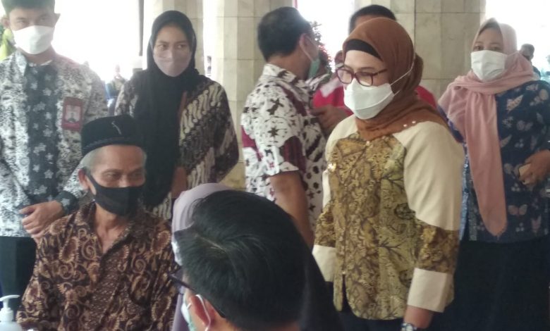 Dalam kegiatan Vaksinasi 494 hari ini turut dihadiri oleh Bupati Indramayu, Nina Agustina. (Candra)