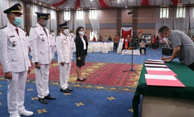 Terdapat 44 pejabat, termasuk 5 Kecamatan, 34 Lurah dan 1 Kapus yang di rolling oleh Walikota Andrei Angouw dan Wakil Walikota Richard Sualang. (David)